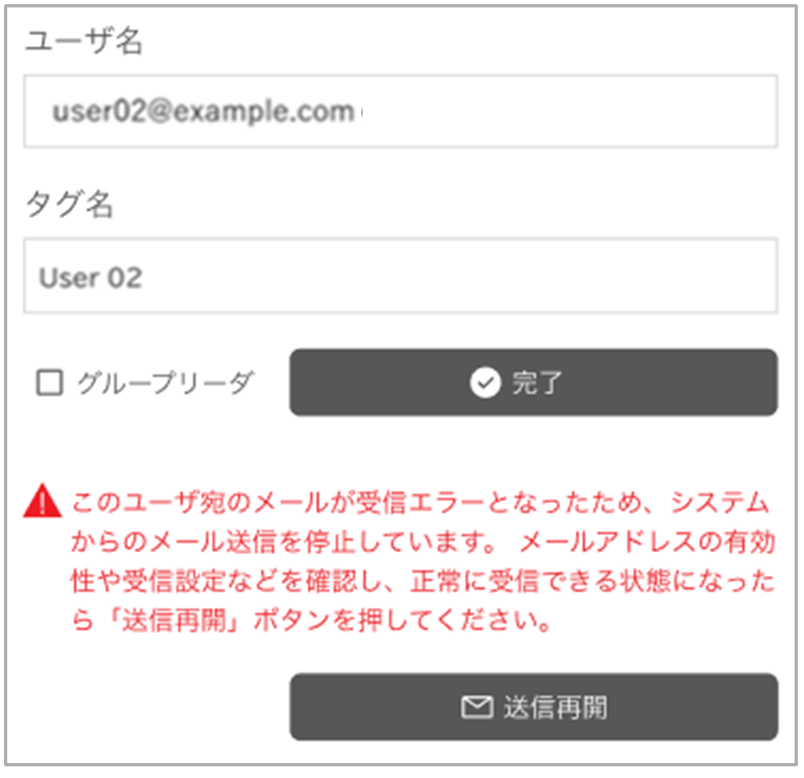 - メール送信停止状態のユーザがいる場合、[リソース管理]メニューの[ユーザ管理]の横に